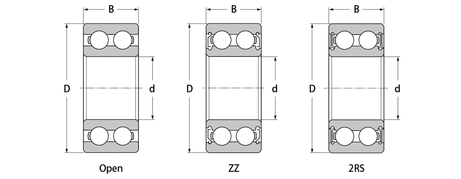 | d | D | B | Open | ZZ | 2RS | Cr | Cor | Open, ZZ | 2RS | ||